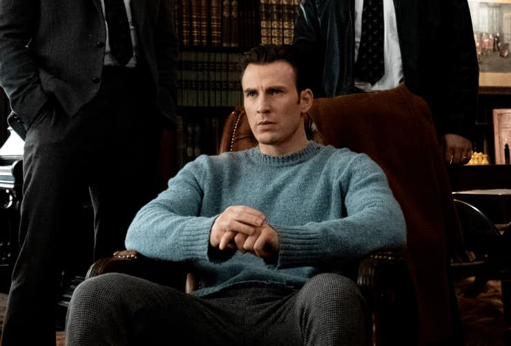 Not a scene from the movie, but the sweater is absolutely in it! There is a scene in knives out where chris evans is in a freaking cable knit sweater sitting in front of four beer bottles and it's the hottest. Knives out serves as evans' first role after wrapping up his time as steve rogers aka captain on twitter, the official knives out account changed its name to chris evans' sweater stan account and has been tweeting about both the cream cable knit and blue sweater evans wears in the movie. The sweater has been trending on social media, featured in publications like the new yorker and the ny post, and some retailers are even reporting sales up 150. Chris evans and sarah paulson are totally twinning.